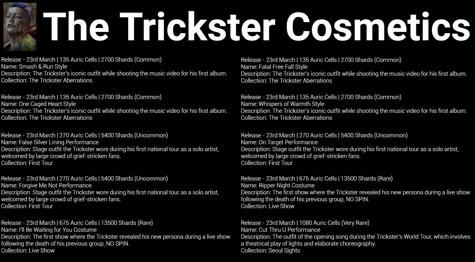 Dbdleaks On Twitter Chapter 19 Cosmetics Full Details Added Previously Missing Data Release Dates Prices Etc Leaksdbd Dbdleaks Dbd Deadbydaylight Https T Co 6cjvxkwjej Twitter